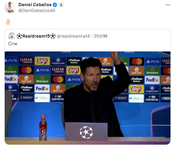 塞巴略斯轉(zhuǎn)發(fā)西蒙尼發(fā)布會視頻,并附上emoji“