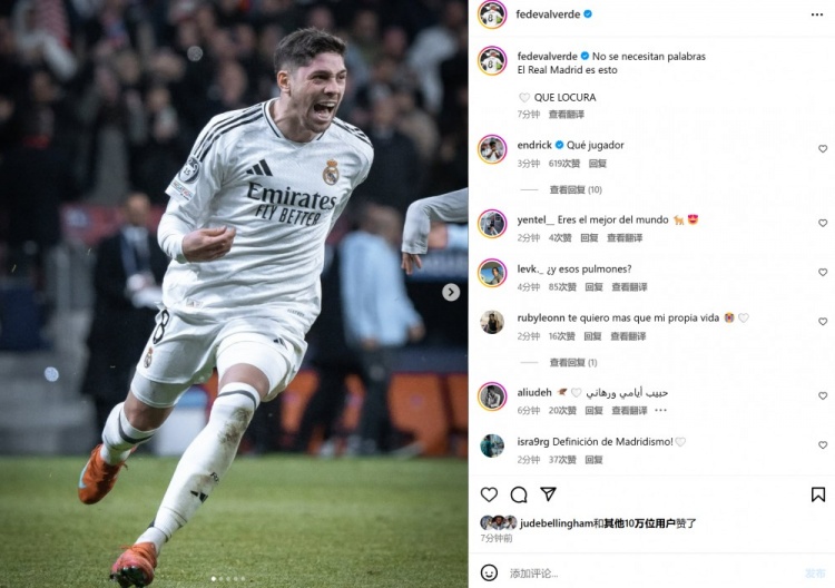 本場(chǎng)比賽巴爾韋德首發(fā)出戰(zhàn)表現(xiàn)出色,在點(diǎn)球大戰(zhàn)中也穩(wěn)穩(wěn)命中,賽后他在個(gè)人社媒曬出慶祝照,配文寫道:“無(wú)需多言,這就是皇馬,太瘋狂了!”