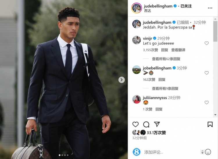 發(fā)布時間:2025年01月08日 05:50點擊:欄目:足球新聞 1月8日訊 北京時間1月10日凌晨3點,皇馬將在西班牙超級杯半決賽中對陣馬洛卡。這場比賽在沙特吉達阿卜杜拉國王體育場進行,皇馬全隊已抵達吉達,準(zhǔn)備參加西超杯的比賽。皇馬中場貝林厄姆在社交媒體上曬出抵達吉達的照片,配文:“吉達,參加西超杯?!?/p> 除特別注明外,本站所有內(nèi)容均為九球直播整理排版,轉(zhuǎn)載請注明出處:出征西超杯!貝林厄姆社媒曬抵達沙特吉達照片 本文標(biāo)簽: 足球 西甲 皇家馬德里 貝林厄姆