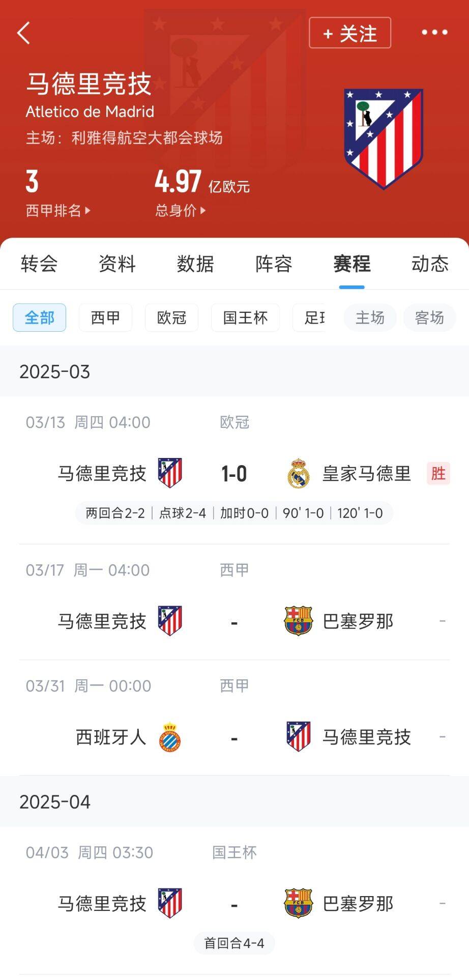 發(fā)布時間:2025年03月13日 10:50點擊:欄目:足球新聞 03月13日訊 馬競在歐冠16強止步,他們點球大戰(zhàn)不敵皇馬。而接下來,馬競還有惡戰(zhàn)要打。他們將在本周末的聯(lián)賽對陣巴薩,目前巴薩少賽一輪領跑西甲,馬競排在第3,他們比巴薩少1分。此外,在國際比賽日之后,馬競國王杯對陣巴薩的第二回合也將在北京時間4月3日的凌晨打響,首回合他們和巴薩打成4-4平。 除特別注明外,本站所有內容均為九球直播整理排版,轉載請注明出處:還有惡戰(zhàn)馬競打完皇馬,周末將聯(lián)賽打巴薩&4月國王杯再打巴薩 本文標簽: 足球 西甲 皇家馬德里 巴塞羅那 馬德里競技 歐冠