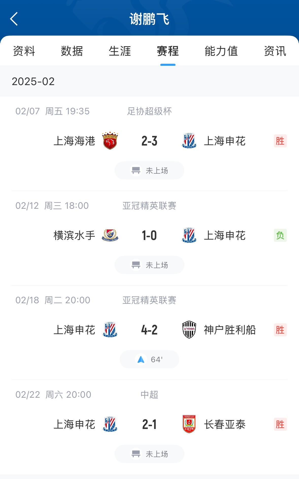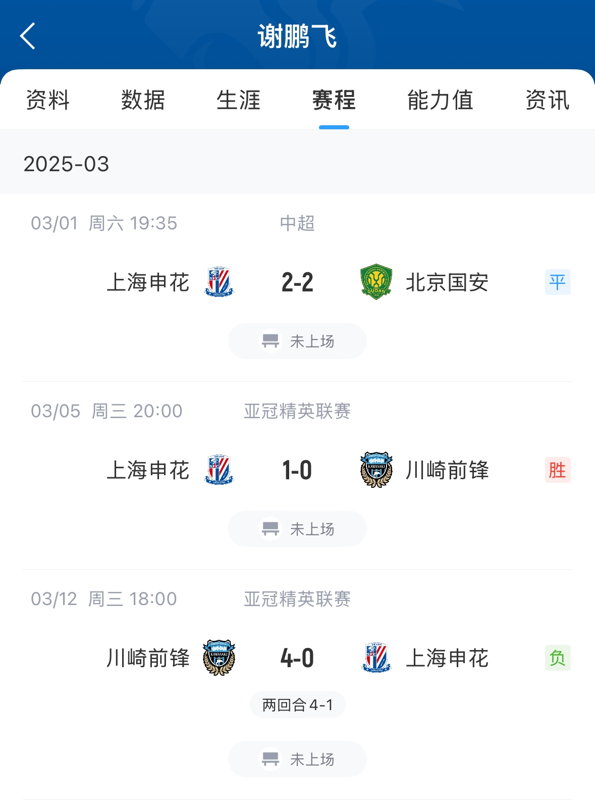 發(fā)布時間:2025年03月13日 14:50點擊:欄目:足球新聞 03月13日訊 昨日亞冠,申花不敵川崎前鋒無緣晉級。謝鵬飛本場比賽替補未出場,謝鵬飛今年6月底滿32歲,本賽季目前代表申花只出場1次出場時間26分鐘,其余幾場比賽均未出場。據(jù)德轉數(shù)據(jù)統(tǒng)計,23-24賽季謝鵬飛代表申花出場35次,打進4球送出7次助攻。 除特別注明外,本站所有內(nèi)容均為九球直播整理排版,轉載請注明出處:機會寥寥!31歲謝鵬飛本賽季目前只出場1次,登場時間26分鐘 本文標簽: 足球 中超 中國足球 上海申花