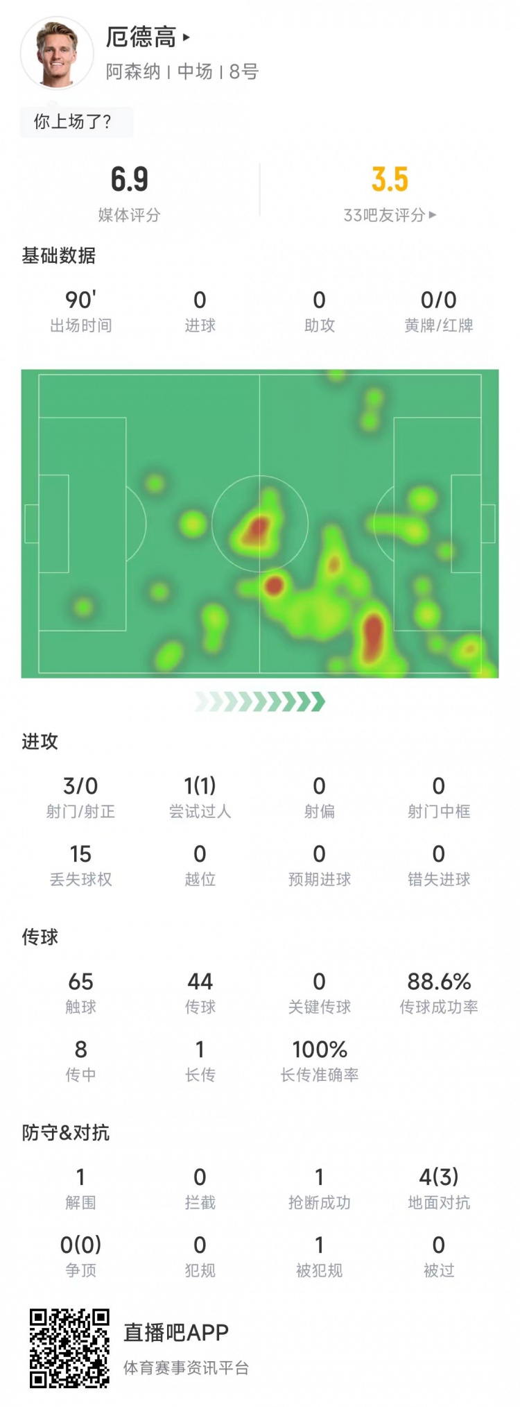 厄德高本場(chǎng)比賽數(shù)據(jù):