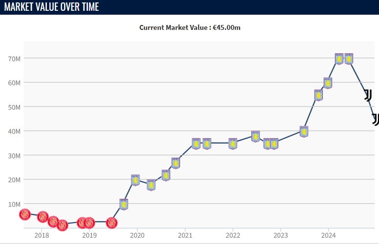 尤文在去年夏天花費5150萬歐元從未來引進這名中場,本賽季他為尤文出戰(zhàn)22場比賽,沒有取得進球和助攻。值得一提的是,在加盟尤文以后,他的德轉(zhuǎn)身價已由原先的7000萬歐元,跌至目前的4500萬歐元。