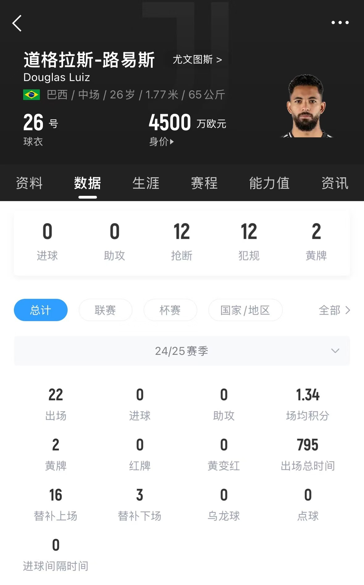 除特別注明外,本站所有內(nèi)容均為九球直播整理排版,轉(zhuǎn)載請注明出處:5150萬買來!26歲道格拉斯-路易斯22場0球0助,身價已狂跌2500萬