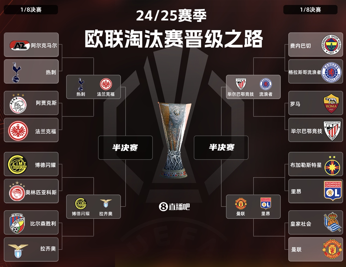 除特別注明外,本站所有內(nèi)容均為九球直播整理排版,轉(zhuǎn)載請注明出處:??歐聯(lián)8強(qiáng)對陣:曼聯(lián)vs里昂,流浪者vs畢巴,熱刺vs法鷹