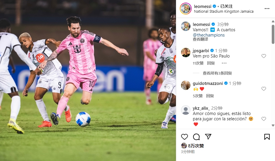 賽后梅西更新ins寫(xiě)道:加油??!??進(jìn)入1/4決賽!