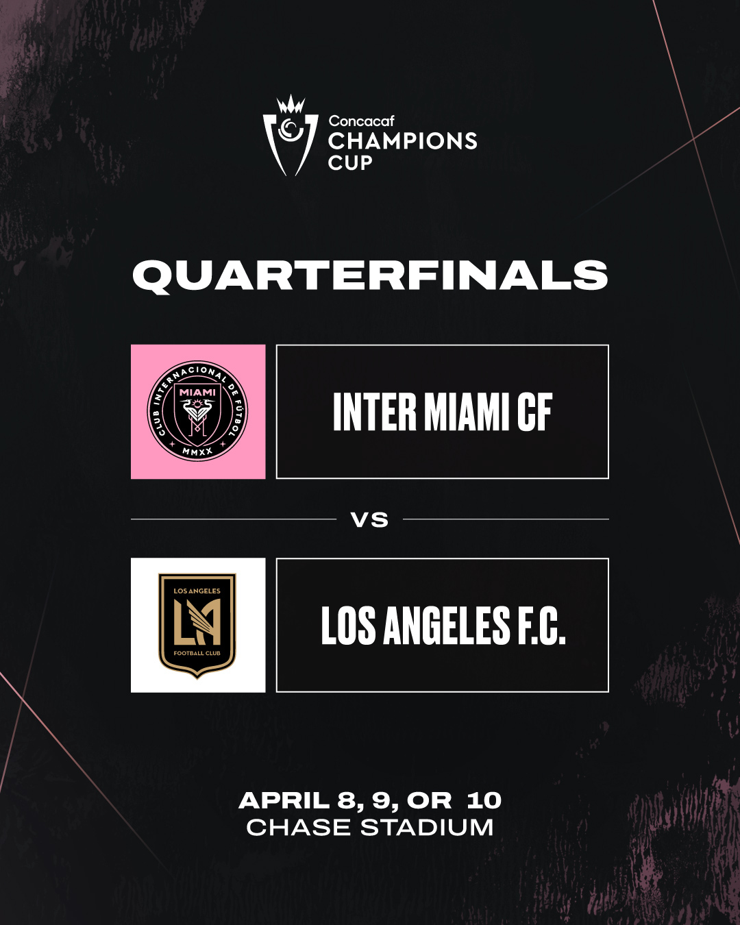 中北美冠軍杯1/4決賽,邁阿密?chē)?guó)際將對(duì)陣洛杉磯FC,具體時(shí)間未定。