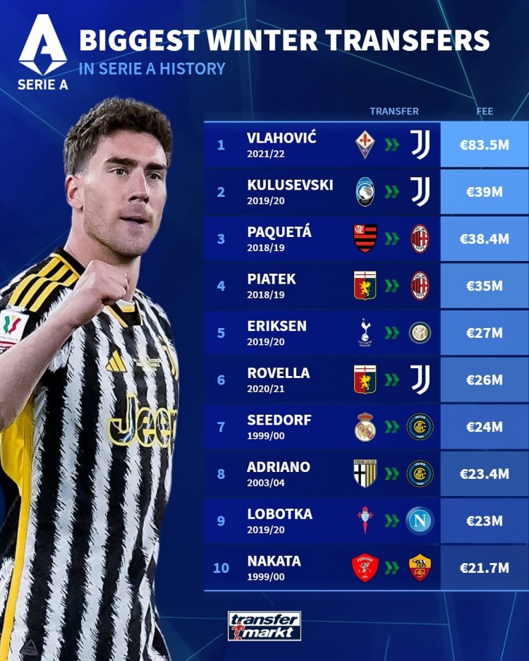 意甲冬窗最貴引援榜: