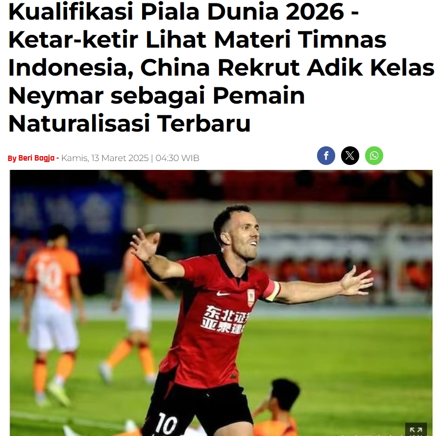 03月14日訊 國足歸化塞爾吉尼奧引發(fā)世預賽對手關(guān)注,印尼媒體BOLA撰文報道了這一消息。