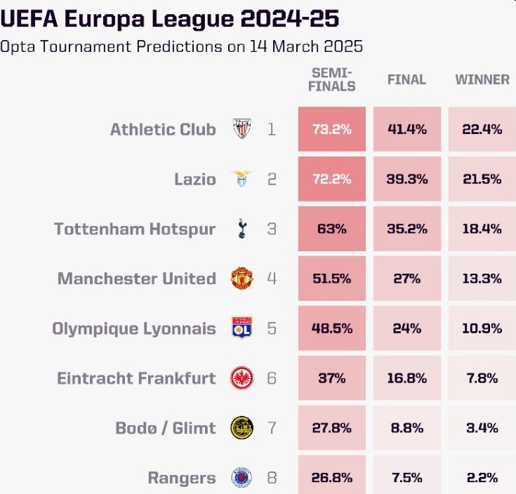 除特別注明外,本站所有內(nèi)容均為九球直播整理排版,轉(zhuǎn)載請注明出處:OPTA列本賽季歐聯(lián)杯奪冠概率:畢爾巴鄂競技居首,曼聯(lián)第四
