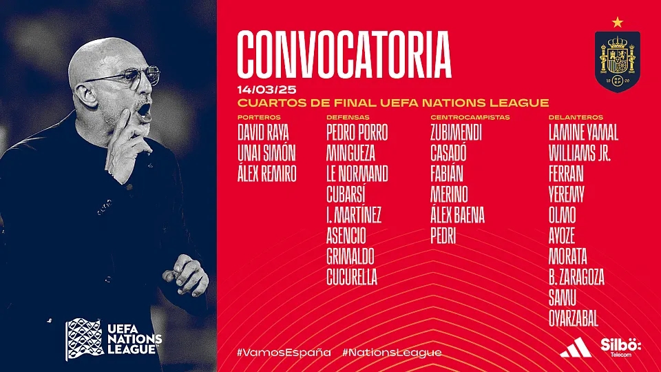 3月14日訊 西班牙國(guó)家隊(duì)公布新一期球員名單,巴薩有亞馬爾、費(fèi)蘭等7人入選,皇馬有勞爾-阿森西奧一人入選,馬競(jìng)1人,皇社、黃潛各3人。