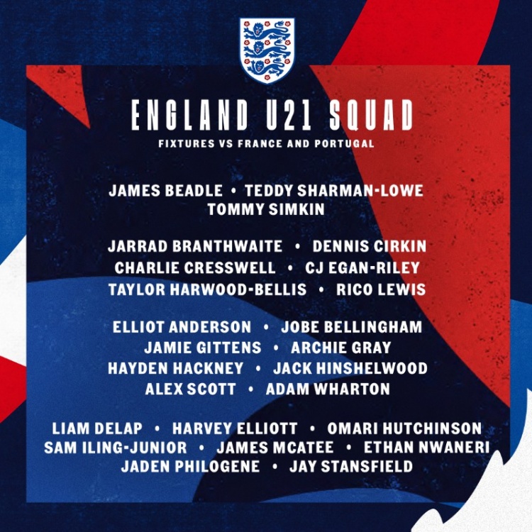 3月14日訊 英足總公布英格蘭U21隊大名單,里科-劉易斯、小貝林厄姆、埃利奧特、麥卡蒂、恩瓦內(nèi)里在列。本月的國際比賽日,英格蘭U21隊將與法國U21隊和葡萄牙U21隊進行2場熱身賽。