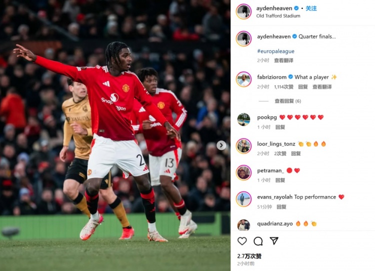 海文也在賽后通過社媒曬出自己的比賽照,并配文:“晉級八強戰(zhàn)…#歐聯(lián)杯#”。名記羅馬諾也現(xiàn)身評論區(qū)夸贊:“多么出色的球員?!?/p>