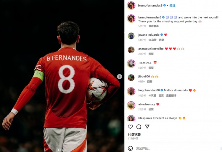 B費(fèi)也在今日通過(guò)社媒曬出自己的比賽照,并配文:“??????3粒進(jìn)球,并且我們也晉級(jí)了下一輪!感謝球迷們?cè)谧蛲砹钊穗y以置信的支持!”