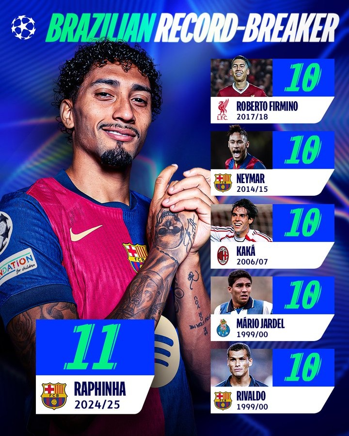 發(fā)布時間:2025年03月14日 22:50點(diǎn)擊:欄目:足球新聞 3月14日訊 歐冠官方今日曬出海報,拉菲尼亞打破巴西球員單賽季歐冠進(jìn)球紀(jì)錄。本賽季,拉菲尼亞歐冠已經(jīng)打入了11球,成為單賽季歐冠進(jìn)球最多的巴西球員,超過菲爾米諾(17-18賽季10球)、內(nèi)馬爾(14-15賽季10球)、卡卡(06-07賽季10球)、賈德爾(90-00賽季10球)和里瓦爾多(99-00賽季10球)。 除特別注明外,本站所有內(nèi)容均為九球直播整理排版,轉(zhuǎn)載請注明出處:拉菲尼亞歐冠打進(jìn)11球,成為單賽季歐冠進(jìn)球最多的巴西球員 本文標(biāo)簽: 足球 西甲 巴塞羅那 歐冠