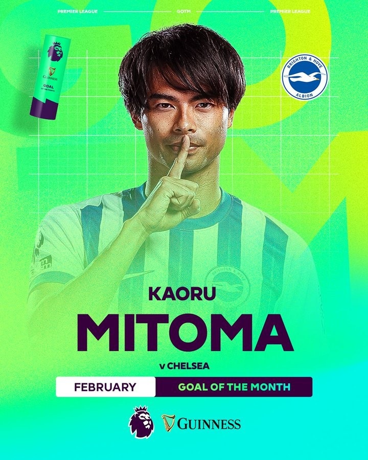 3月14日訊 英超官方宣布,布萊頓日本邊鋒三笘薰在3-0大勝切爾西一役的首粒進球當選為英超2月最佳進球。