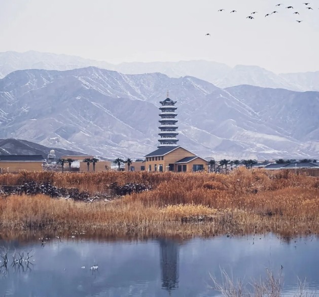 月亮泊戈壁濕地溫泉旅游度假區(qū)位于新疆天山南麓,阿克蘇市西南部,阿依庫勒鎮(zhèn)老子新村地界,阿克蘇“1+7+N”商貿(mào)文旅合作區(qū)范圍內(nèi),南鄰314國道,距阿克蘇市區(qū)約40公里,占地面積100平方公里。景區(qū)內(nèi)有天地塔、雅丹峽谷、戈壁烽火臺、濕地野生動物保護區(qū)和五口天然泉眼等景觀,配套建設(shè)有溫泉度假酒店、武姬酒館、民宿等服務(wù)設(shè)施,因其地下溫泉水中富含硫磺等礦物質(zhì)成分,經(jīng)常在溫泉中洗泡可以治療和改善皮膚疾病,深受當(dāng)?shù)鼐用竦南矏?,是一處集鄉(xiāng)村旅游和休閑康養(yǎng)等為一體的綜合性溫泉養(yǎng)生度假景區(qū)。2021年11月被評定為國家3A級旅游景區(qū)。本景區(qū)以“戈壁濕地溫泉”為核心特色,提供溫泉康養(yǎng)、生態(tài)觀光和文化體驗三大核心業(yè)務(wù)。景區(qū)內(nèi)的天然硫磺溫泉常年保持在40℃左右,富含硫、鋰、氟等多種礦物質(zhì),具有顯著的養(yǎng)生療愈功效。溫泉區(qū)結(jié)合足療、玉療、沙療等項目,為游客提供多樣化的健康體驗,成為放松身心的理想之地。景區(qū)內(nèi)分布著戈壁湖泊、濕地和蘆葦蕩等自然景觀,形成了獨特的生態(tài)風(fēng)貌。濕地是候鳥遷徙的重要棲息地,每年春秋季節(jié),大雁、天鵝等珍稀鳥類在此棲息,吸引了眾多攝影愛好者和生態(tài)旅游者。戈壁與濕地交相輝映,夕陽下的月亮泊湖面波光粼粼,被譽為“人間凈土”,為游客提供了絕佳的觀光體驗。