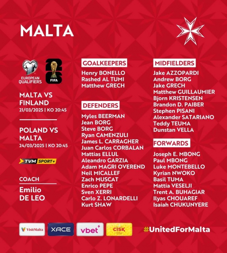 馬耳他國家隊目前FIFA排名168位,本月他們將在世預(yù)賽中面對芬蘭、波蘭。