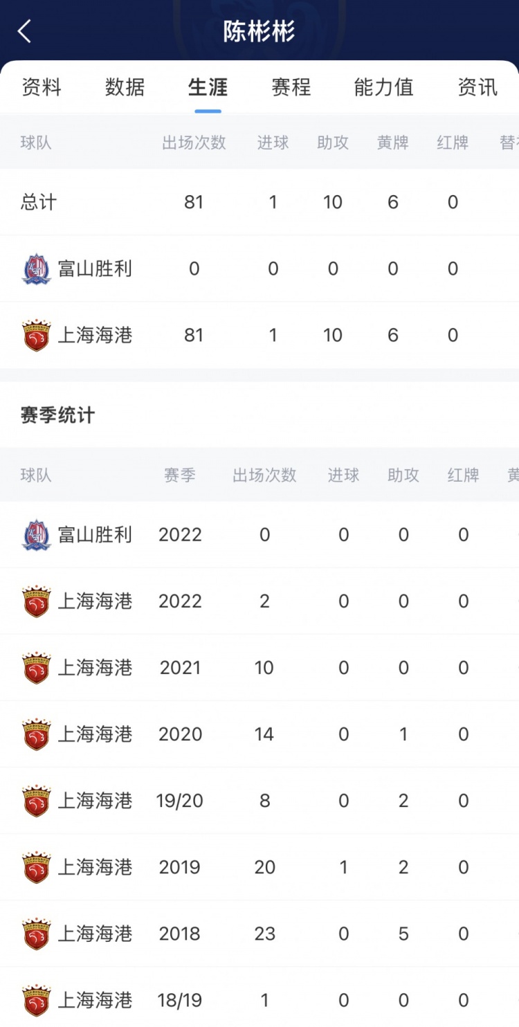 陳彬彬出生于1998年,今年6月將滿27歲,場(chǎng)上司職左前衛(wèi)和左翼衛(wèi)。此前他在上海海港(上港)效力多年,也曾到日本J3聯(lián)賽留洋。上賽季結(jié)束后,陳彬彬離開海港,隨后加盟南通支云。