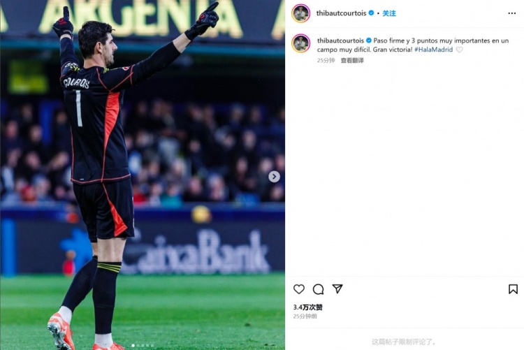 他也在賽后通過(guò)社媒曬出比賽照,并配文:“在一個(gè)非常艱難的客場(chǎng)向前邁出堅(jiān)定一步并取得3分,很棒的勝利!#馬德里前進(jìn)