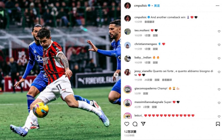 他也在賽后通過(guò)社媒曬出自己的進(jìn)球瞬間照,并配文:“那么又是一場(chǎng)逆轉(zhuǎn)??”。普利西奇本賽季已經(jīng)為米蘭38場(chǎng)貢獻(xiàn)15球7助攻。