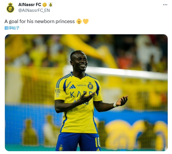 發(fā)布時間:2025年03月16日 09:50點擊:欄目:足球新聞 03月16日訊 沙特聯(lián)第25輪,利雅得勝利3-1戰(zhàn)勝卡赫胡德。馬內(nèi)在比賽中進球后做出了搖籃慶祝。而利雅得勝利官推也曬出馬內(nèi)的慶祝照,并寫道:“進球獻給他的新生公主。”馬內(nèi)妻子名叫艾莎,現(xiàn)年19歲。她在16歲時和馬內(nèi)相識,在去年滿18歲后和馬內(nèi)結(jié)婚。 除特別注明外,本站所有內(nèi)容均為九球直播整理排版,轉(zhuǎn)載請注明出處:當(dāng)?shù)?32歲馬內(nèi)和19歲妻子迎來第一個孩子 本文標簽: 足球 德甲 拜仁慕尼黑 英超 利物浦 利雅得勝利