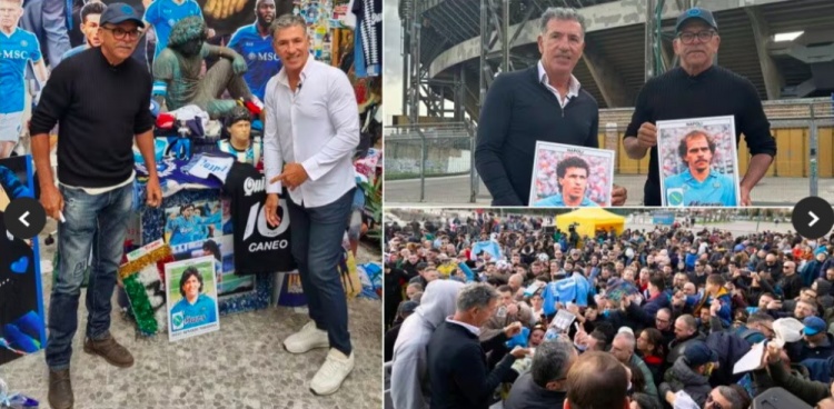 這兩位那不勒斯傳奇也拿著自己球員時(shí)代的照片來到馬拉多納球場(chǎng)外,他們被球迷包圍并為球迷簽名。
