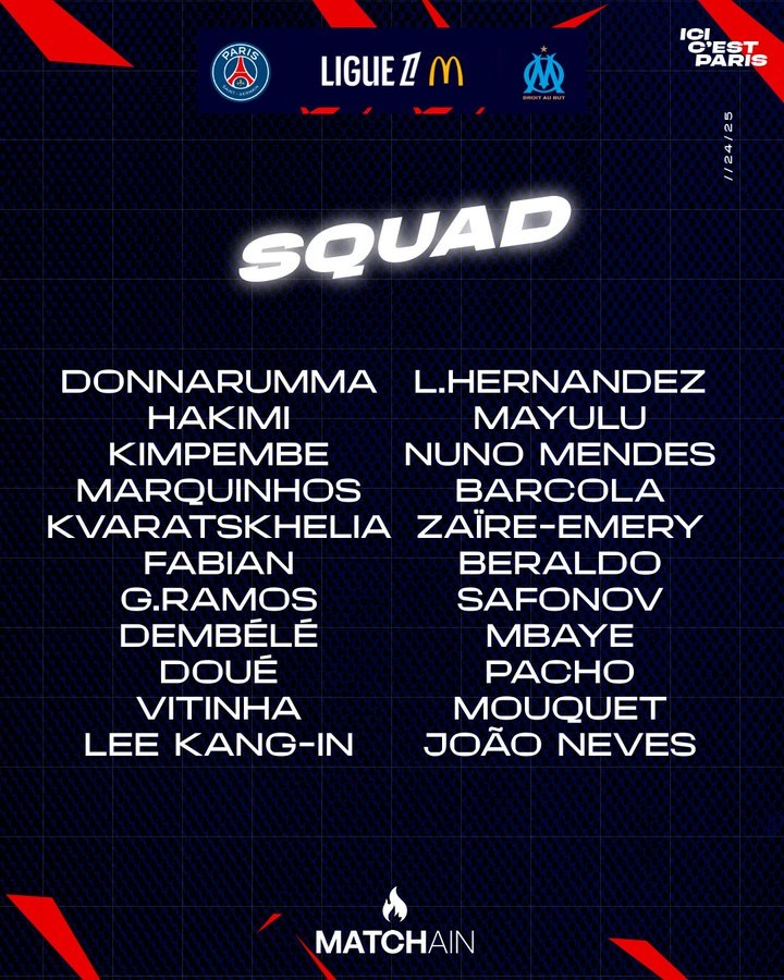 3月16日訊 北京時間明天凌晨3點45分,巴黎圣日耳曼將在法甲主場迎戰(zhàn)馬賽,巴黎現(xiàn)在公布了比賽名單。