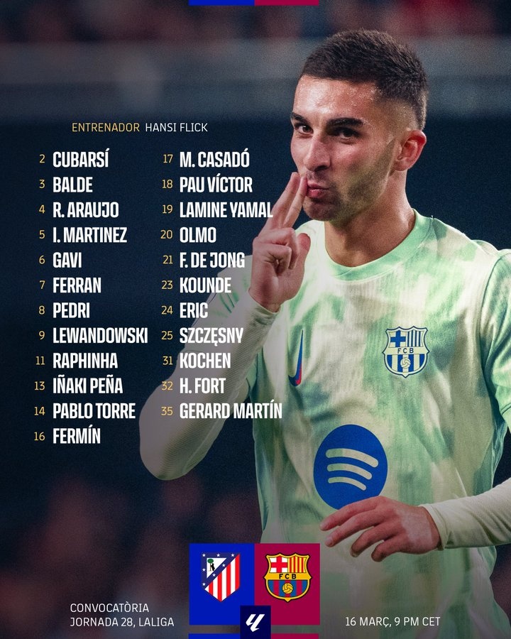 前鋒:7-費(fèi)蘭、9-萊萬、11-拉菲尼亞、18-維克托、19-亞馬爾