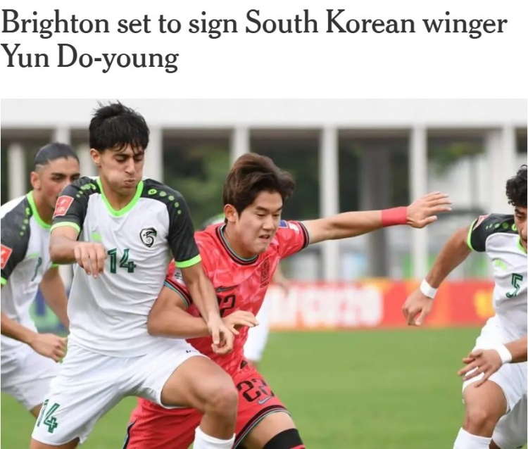 3月16日訊 The Athletic報(bào)道,布萊頓即將簽下18歲韓國(guó)邊鋒尹棹泳。