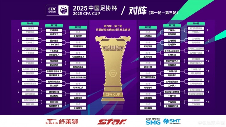 3月16日訊 2025賽季中國足協(xié)杯第1輪結(jié)束爭(zhēng)奪,16支晉級(jí)球隊(duì)產(chǎn)生,他們?cè)诘诙唽⒚鎸?duì)中甲球隊(duì)。