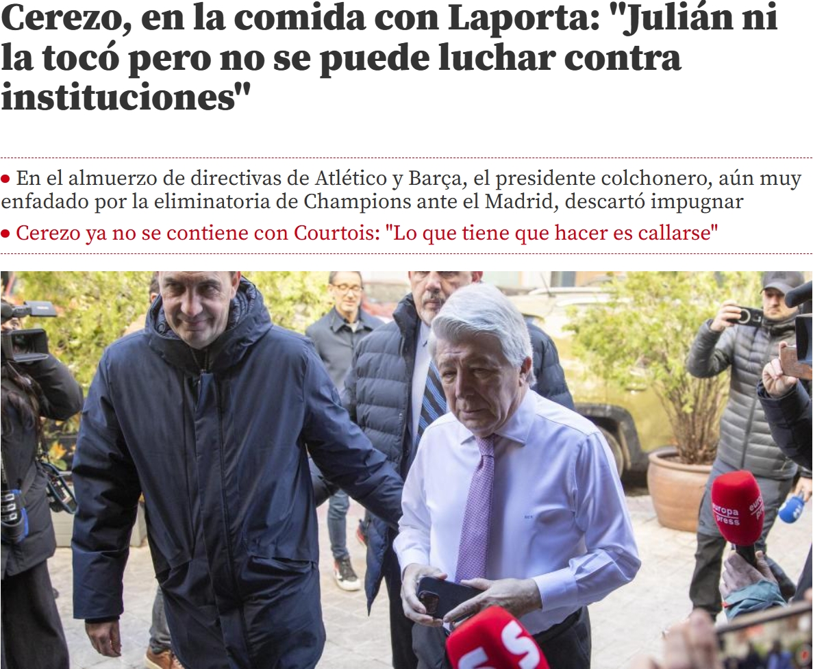 03月16日訊 馬競即將在本輪西甲迎戰(zhàn)巴薩,在賽前的高層聯(lián)誼午餐會上,馬競主席塞雷佐再次談到了周中歐冠阿爾瓦雷斯被判無效的點球,塞雷佐斬釘截鐵地表示這球應(yīng)算有效。