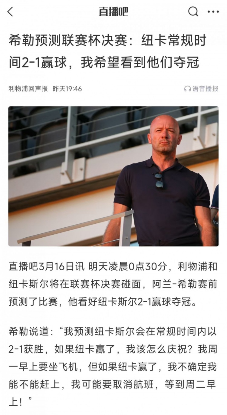 除特別注明外,本站所有內(nèi)容均為九球直播整理排版,轉(zhuǎn)載請(qǐng)注明出處:小嘴開(kāi)了光!希勒賽前精準(zhǔn)預(yù)測(cè):紐卡常規(guī)時(shí)間2-1贏利物浦