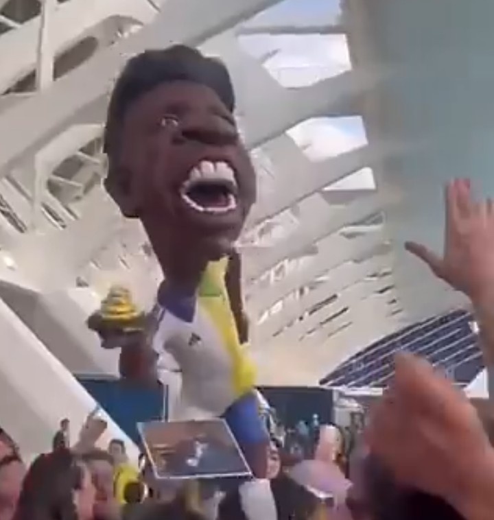 這座人偶塑像在法雅節(jié)中占據(jù)著重要位置,它由當(dāng)?shù)厮囆g(shù)家維克多-納瓦羅創(chuàng)作,維尼修斯身上穿的衣服一半是皇馬球衣,另一半是巴西國家隊(duì)球衣。它擁有自己的綽號“Cagalló d'Or”,以此來嘲笑他最終未能贏得的金球獎。