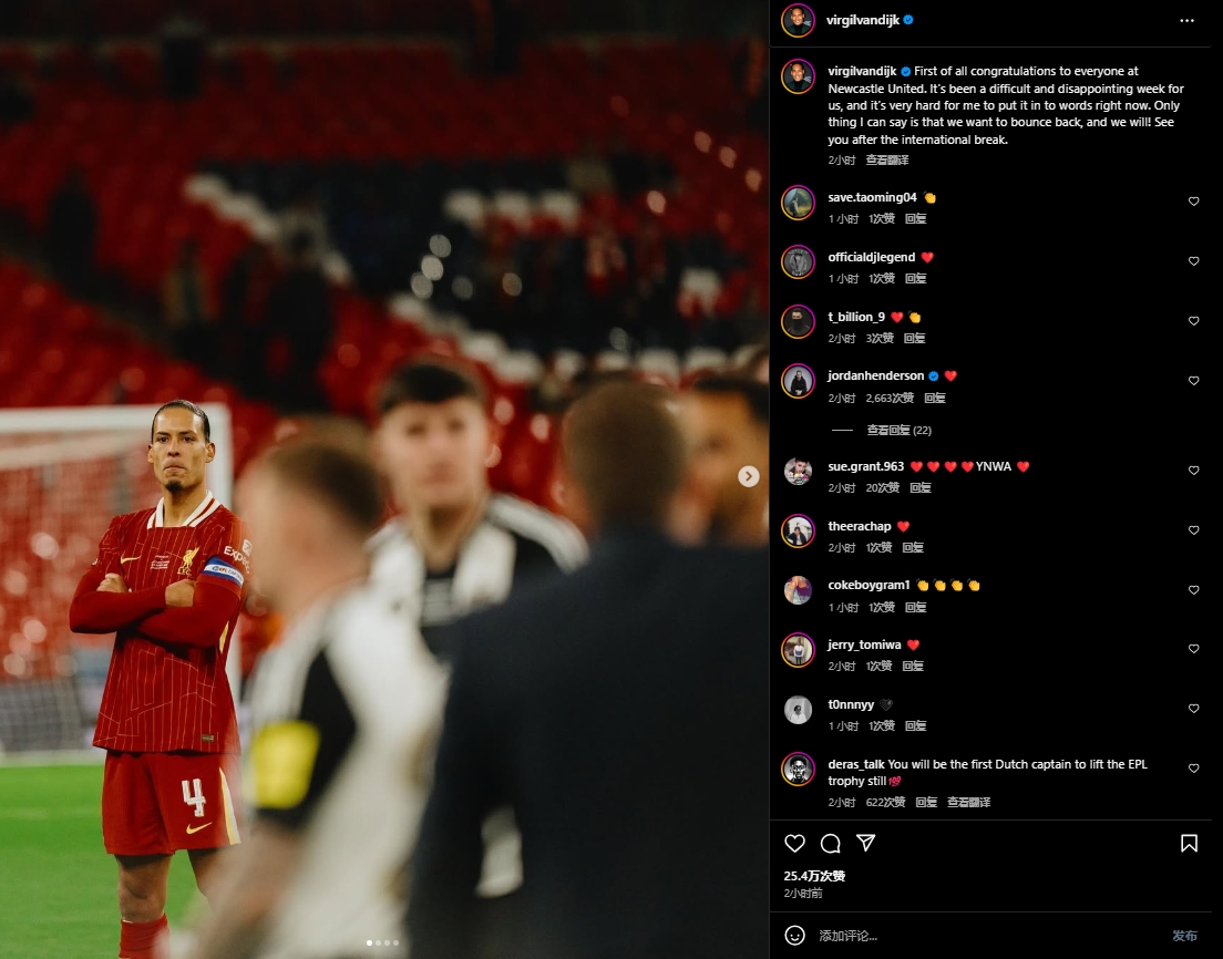 談及失利原因,范戴克分析道:“比賽很艱難。紐卡斯?fàn)柍浞职l(fā)揮了他們的強(qiáng)項(xiàng)——雖然聽起來(lái)像陳詞濫調(diào),但他們的對(duì)抗強(qiáng)度、犯規(guī)戰(zhàn)術(shù)、定位球設(shè)計(jì)都做得很好。我們給了對(duì)手信心,讓他們覺(jué)得今夜屬于自己。我們的表現(xiàn)確實(shí)不夠好,這讓人非常失望和痛苦?!?/p>