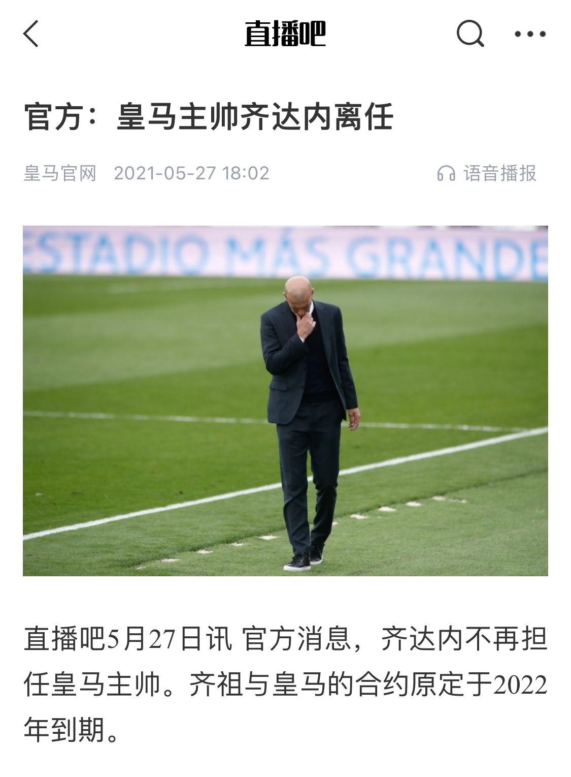 2021年5月27日,皇馬官方消息,齊達(dá)內(nèi)不再擔(dān)任皇馬主帥。第一次出任皇馬一線隊(duì)主帥期間,齊達(dá)內(nèi)在兩年半的時(shí)間里獲得了9個(gè)冠軍,包括了3個(gè)歐冠冠軍、2個(gè)世俱杯冠軍、2個(gè)歐洲超級(jí)杯冠軍、1個(gè)西甲冠軍以及1個(gè)西班牙超級(jí)杯冠軍。