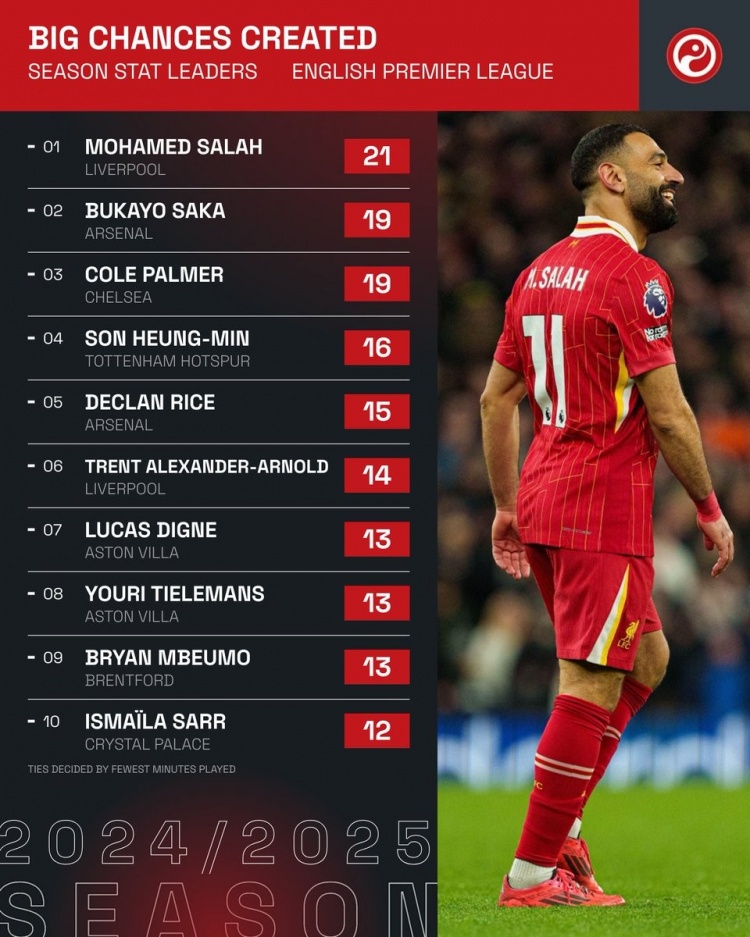 除特別注明外,本站所有內(nèi)容均為九球直播整理排版,轉(zhuǎn)載請(qǐng)注明出處:本賽季英超創(chuàng)造重大機(jī)會(huì)榜:薩拉赫21次居首,薩卡&帕爾默19次