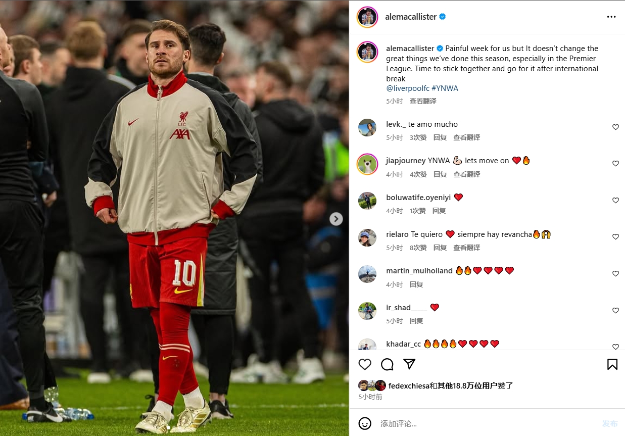 除特別注明外,本站所有內(nèi)容均為九球直播整理排版,轉(zhuǎn)載請注明出處:麥卡利斯特社媒:這是痛苦的一周,國際比賽日后要全力以赴