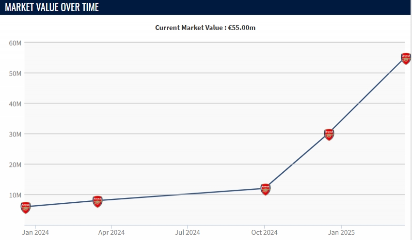 從2024年10月至今不到半年的時(shí)間,恩瓦內(nèi)里的身價(jià)已經(jīng)從1200萬(wàn)暴漲到5500萬(wàn)。據(jù)羅馬諾報(bào)道,阿森納已經(jīng)接近和恩瓦內(nèi)里敲定新的續(xù)約合同,恩瓦內(nèi)里將在3月21日迎來(lái)18歲生日,日前他跳級(jí)入選了英格蘭U21名單。