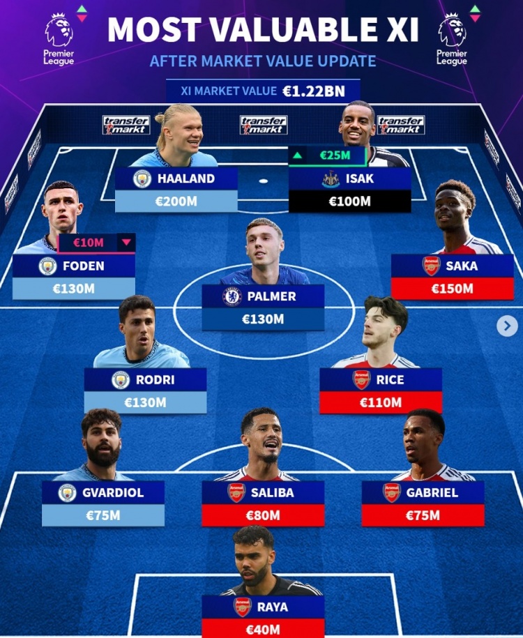 除特別注明外,本站所有內(nèi)容均為九球直播整理排版,轉(zhuǎn)載請(qǐng)注明出處:德轉(zhuǎn)列英超最貴陣:阿森納5人、曼城4將,帕爾默、伊薩克在列