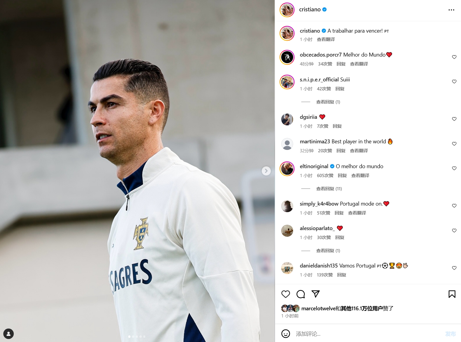 發(fā)布時(shí)間:2025年03月19日 06:50點(diǎn)擊:欄目:足球新聞 3月19日訊 不久前,正在葡萄牙國家隊(duì)備戰(zhàn)的C羅更新了社交媒體。C羅曬出了自己的訓(xùn)練照,配文寫道:“為了勝利而工作!”本期國家隊(duì)比賽日,葡萄牙將會(huì)迎來歐國聯(lián)1/決賽,將在在3月21日和3月24日的客場(chǎng)和主場(chǎng)對(duì)陣丹麥隊(duì)。 除特別注明外,本站所有內(nèi)容均為九球直播整理排版,轉(zhuǎn)載請(qǐng)注明出處:即將對(duì)陣丹麥!C羅曬葡萄牙隊(duì)訓(xùn)練照:為了勝利而工作! 本文標(biāo)簽: 足球 利雅得勝利 國家隊(duì) 葡萄牙 C羅