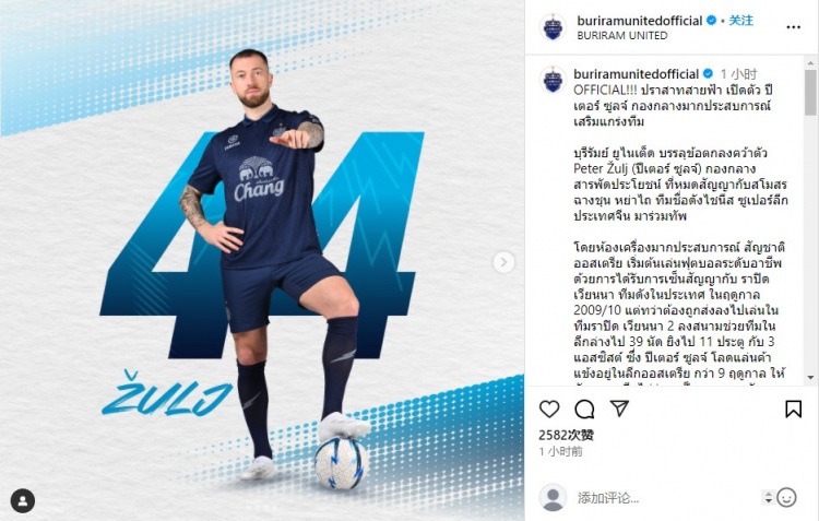 公告寫道:“武里南聯(lián)今日正式宣布簽下一名經(jīng)驗豐富的中場球員祖伊,他和中超球隊長春亞泰的合約剛剛到期。球員曾效力過維也納快速、格拉茨風(fēng)暴、安德萊赫特、伊斯坦布爾等歐洲球隊,并于2018年首次獲得奧地利國家隊的征召,共出戰(zhàn)11場,助攻4次?!?/p>