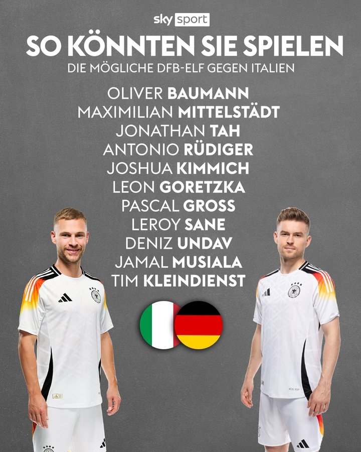 發(fā)布時間:2025年03月20日 01:50點擊:欄目:足球新聞 3月20日訊 在3月21日凌晨03:45,歐國聯(lián)1/4賽決賽首回合,德國即將客場挑戰(zhàn)意大利。德天空預(yù)測了德國隊首發(fā)陣容,拜仁多人入選。德天空預(yù)測德國隊首發(fā)如下:鮑曼、米特爾施塔特、若納坦-塔、呂迪格、基米希、格雷茨卡、格羅斯、薩內(nèi)、翁達夫、穆西亞拉、克萊因丁斯特 除特別注明外,本站所有內(nèi)容均為九球直播整理排版,轉(zhuǎn)載請注明出處:德天空預(yù)測德國隊首發(fā)陣容:基米希、穆西亞拉、薩內(nèi)、呂迪格在列 本文標(biāo)簽: 足球 國家隊 德國 意大利