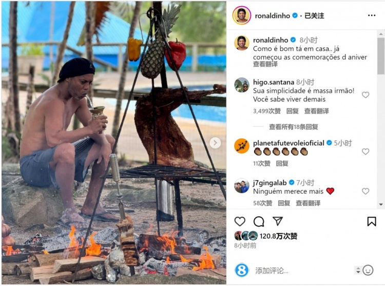 3月20日訊 巴西傳奇球星羅納爾迪尼奧更新社媒動態(tài),曬出戶外燒烤的照片。
