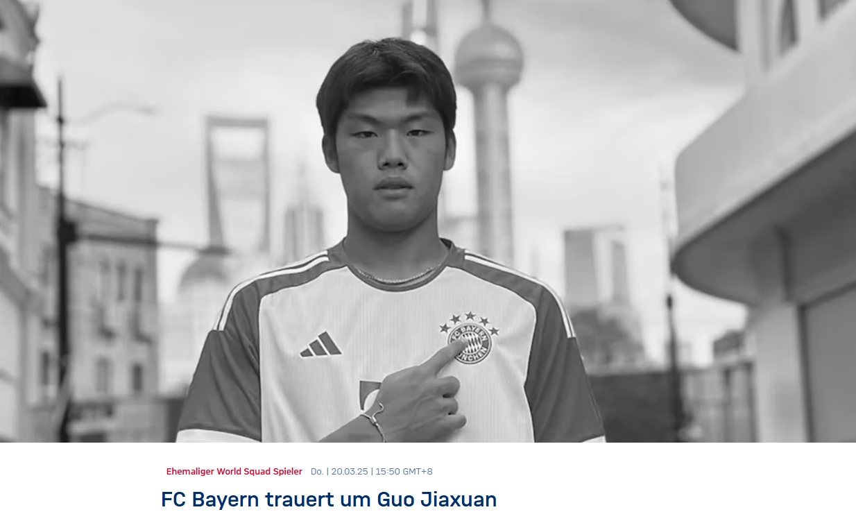 - ?多家德媒報道國安小將郭嘉璇:前拜仁18歲天才球員去世