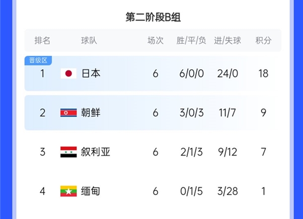 除特別注明外,本站所有內(nèi)容均為九球直播整理排版,轉(zhuǎn)載請(qǐng)注明出處:降維打擊?日本36強(qiáng)賽6戰(zhàn)全勝且1球未丟,18強(qiáng)賽6勝1平再轟24球