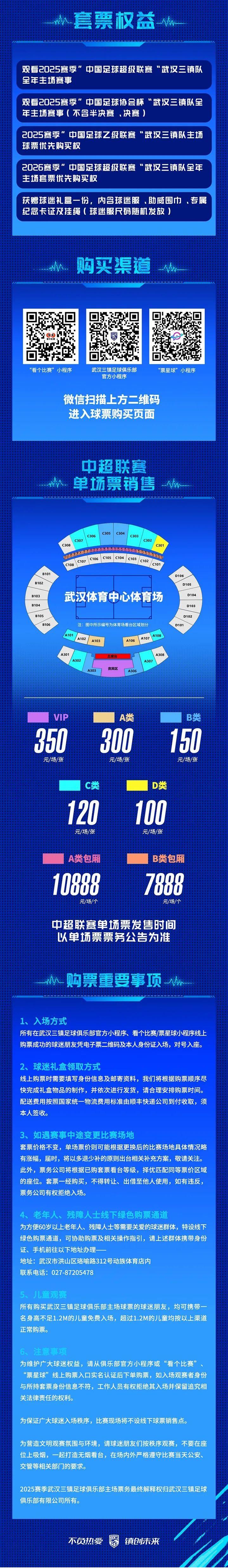 迎接主場,登上看臺,我們一起為武漢、為三鎮(zhèn)而戰(zhàn)!主場票務(wù)詳情請查看下圖:
