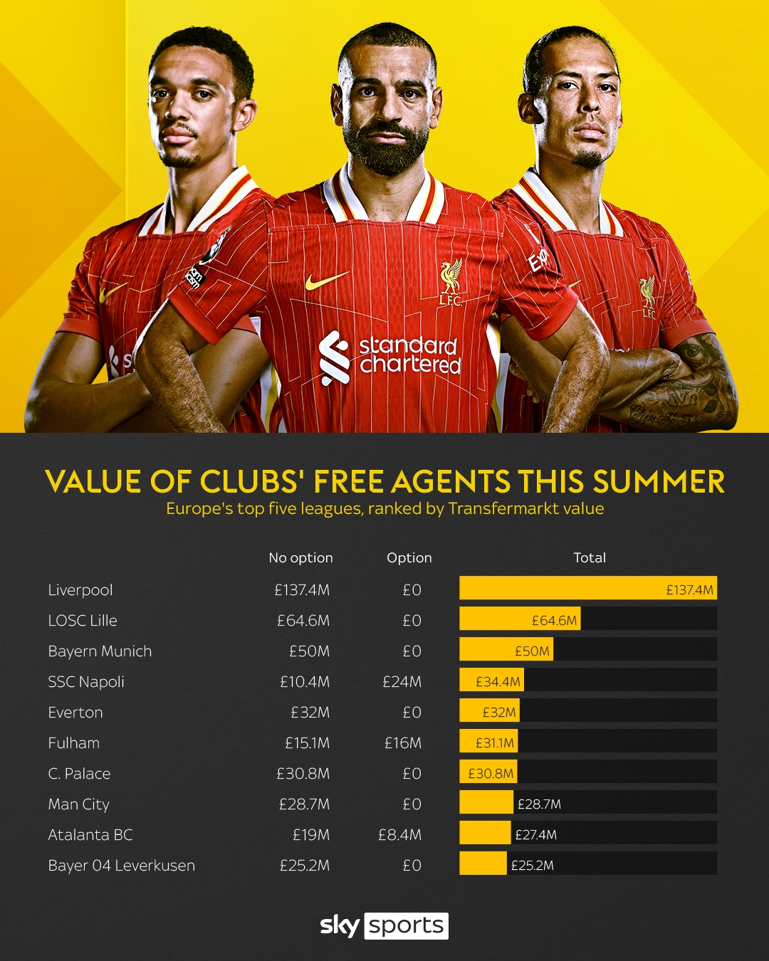03月21日訊 天空體育列出數(shù)據(jù),各隊今夏合同到期的球員如果都離隊,球隊身價將會有什么樣的損失,其中利物浦將直接縮水1.374億鎊,大幅多于其他球隊。