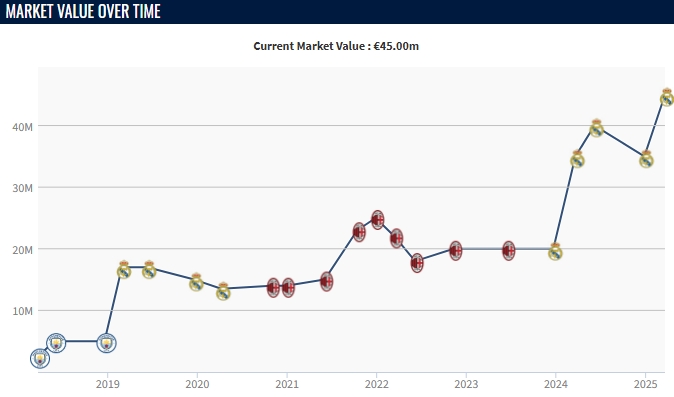 03月21日訊 今日德轉(zhuǎn)更新西甲球員身價,迪亞斯憑借近期優(yōu)異的表現(xiàn),身價上漲1000萬歐,來到4500萬歐。