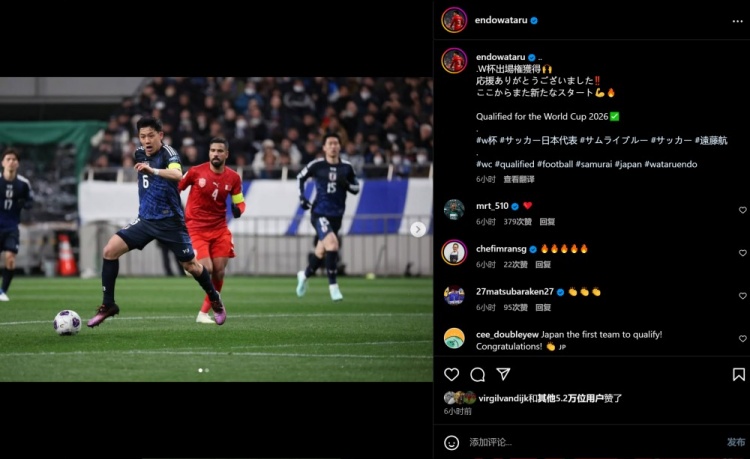 發(fā)布時間:2025年03月21日 23:50點擊:欄目:足球新聞 3月21日訊 世預賽亞洲區(qū)第三階段C組第七輪比賽中,日本2-0擊敗巴林,成為美國、墨西哥、加拿大三個東道主之外首支晉級美加墨世界杯決賽圈的隊伍。隊長遠藤航也在賽后更新社媒,慶祝晉級。遠藤航寫道:獲得世界杯參賽資格!感謝大家的支持,這是一個新的開始! 除特別注明外,本站所有內(nèi)容均為九球直播整理排版,轉(zhuǎn)載請注明出處:東道主外首隊!遠藤航慶祝日本晉級世界杯:這是新的開始 本文標簽: 足球 英超 利物浦 日本